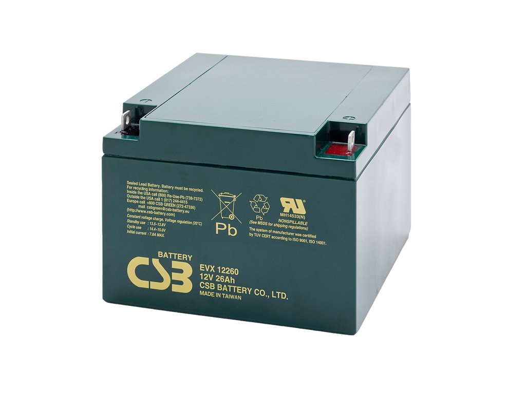 CSB EVX series AGM traction batteries. These are sealed lead-acid batteries in VRLA design. This is a design in which the internal pressure is regulated by valves (VRLA - valve regulated lead acid = valve-controlled lead-acid batteries). AGM technology (absorbed glass mat = electrolyte absorbed in glass fleece), the battery does not contain electrolyte in a liquid state, the electrolyte is absorbed in glass fleece, and thus it is firmly bound in the interior of the battery cells, which eliminates its leakage. The extra strong cell grid ensures high cyclic resistance of the battery. CSB EVX batteries can also be used for "stand by" applications, when the batteries are under constant power supply and serve as a backup source in the event of a power outage. Especially where outages are frequent and the batteries are deeply discharged.