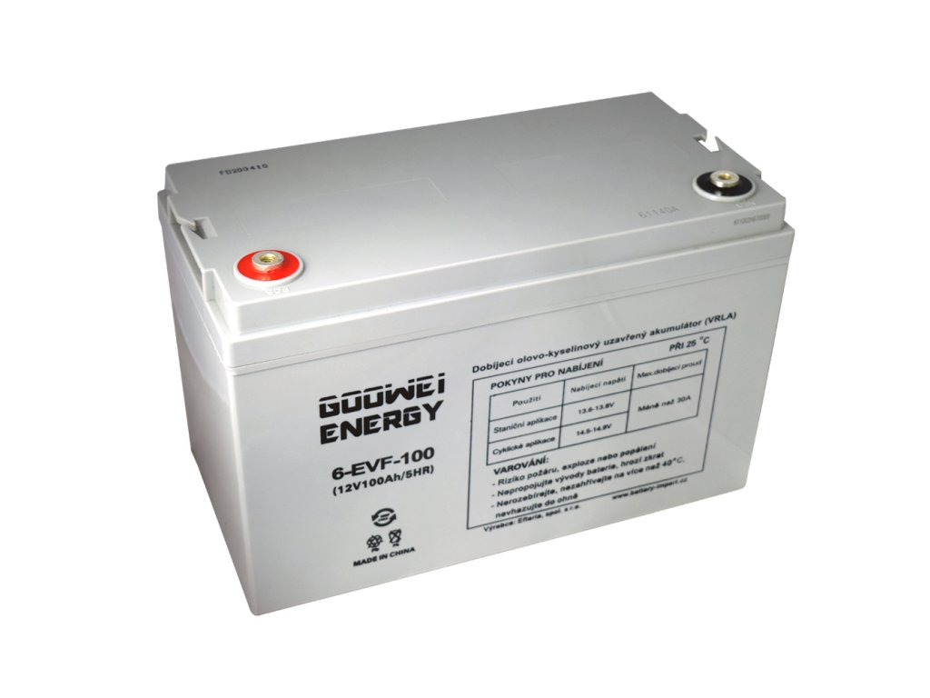 GOOWEI ENERGY gel batteries of the EVF - DEEP CYCLE series are produced under the private brand of our company. Based on many years of experience in the field of batteries, we, in cooperation with the manufacturer, emphasized the high quality of the materials used (purity of lead), long cyclic life (extra thick cell grids) and maximum reliability and safety of the batteries in operation. These are sealed lead batteries in the VRLA design. Hybrid GEL technology = the electrolyte is reinforced in a hybrid gel (combination with AGM), and thus it is firmly bound in the interior of the battery cells, which eliminates its leakage. The extra thick cell grid ensures very high cyclic resistance (around 600 cycles at 80% D.O.D = depth of discharge 80%), which makes these batteries suitable for applications where frequent and deep discharge / cycling occurs, i.e. mainly for electric motor drives. Thanks to a long-term contract and direct import from custom production, we can offer these high-quality batteries at very reasonable prices! Excellent price/quality/performance ratio makes GOOWEI ENERGY traction batteries among the best-selling on the market.