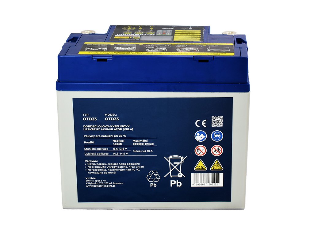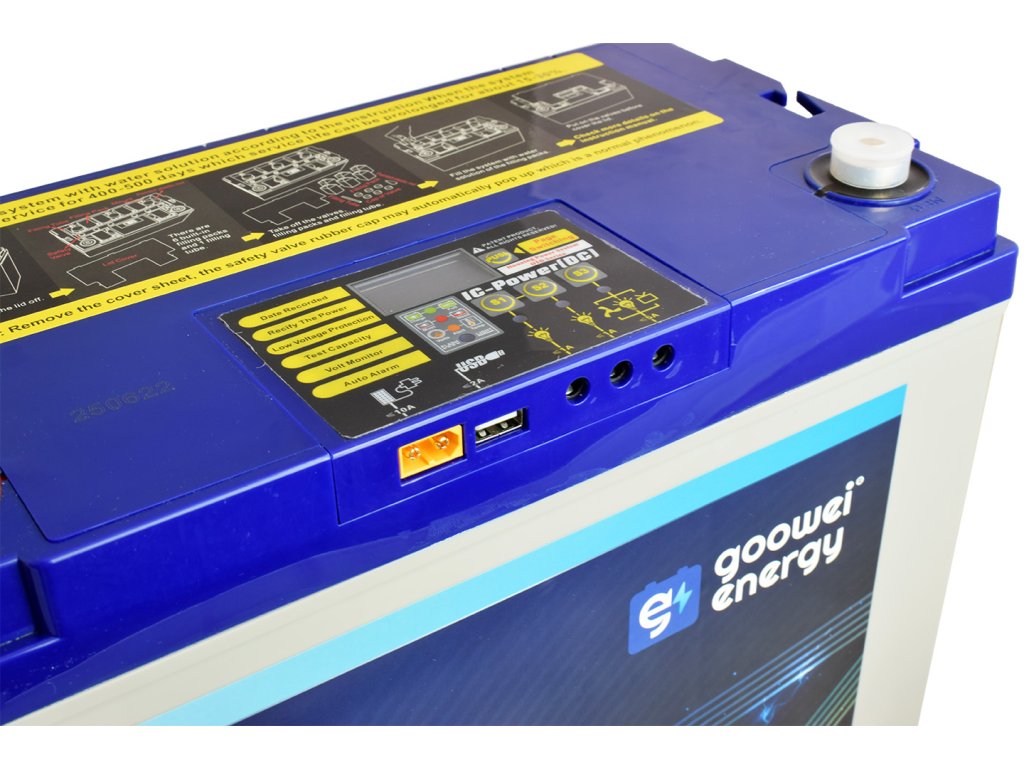 GOOWEI ENERGY from the OTD-DEEP CYCLE series presents a new generation of traction batteries as an independent source of energy for your appliances! Ideal wherever there is no permanent power source. In summer houses, cottages and huts, in caravans or motorhomes, on boats and houseboats or for long camping trips. However, they are also very suitable as a power source for electric motors. With these batteries, you will always have the battery energy under control! The battery is equipped with a display that is activated by pressing a button and displays the current battery voltage and approximate information about the remaining capacity for 30 seconds. The system also has functions that warn of deep discharge of the battery and the need to recharge it. You will also be warned of abnormally high battery temperature or high charging voltage. By respecting the system's control functions, you can significantly contribute to achieving optimal battery life.