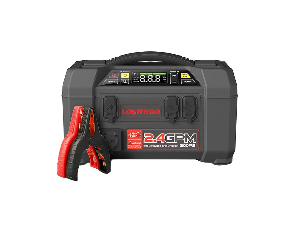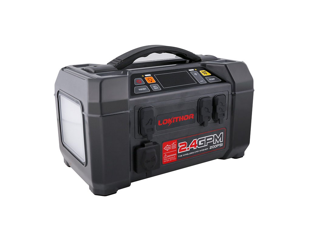 Do you need to shower, wash your bike or cars, or rinse your furry four-legged friend on your travels? With this device, no problem. The integrated pump provides pressure up to 200 PSI (7-9L/min), and with the supplied accessories, all you need is water to pump. Lokithor AW401 takes care of the rest.
