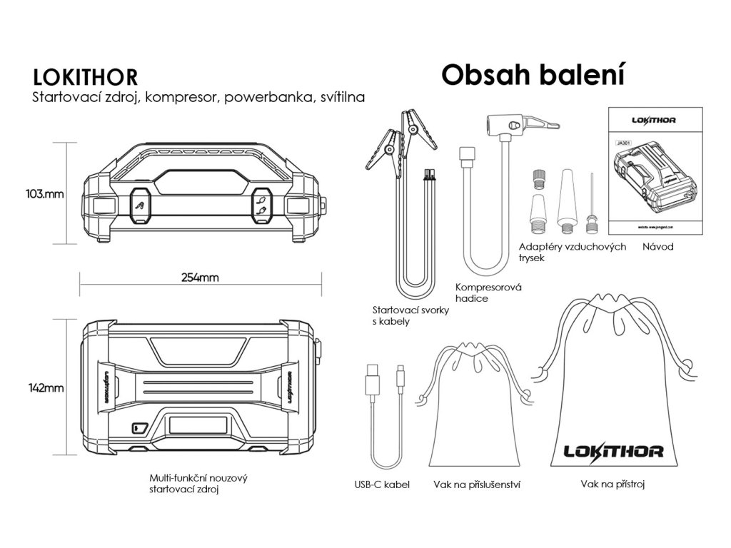 LOKITHOR Jump starter with pump JA302 PRO, 12V, 3000A, 77Wh