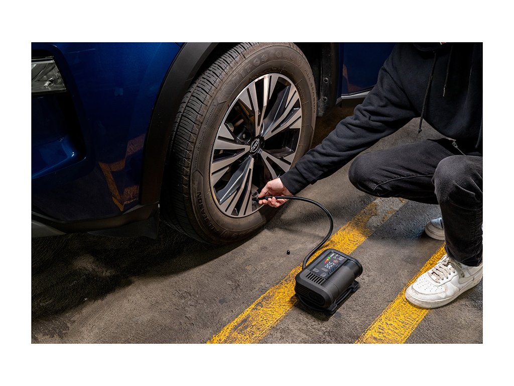 The AX65 includes a new generation portable air compressor that uses an advanced motor for efficient air compression. All this in a compact design with uncompromising performance. Easily and quickly inflate your car's tires. Experience the unmatched speed and efficiency of a 280-watt motor that smoothly inflates tires from 0 to 40 PSI in approximately 2 minutes. Or quickly inflate tires (35-40 PSI) in less than 22 seconds (*205-65R16 95H tire).