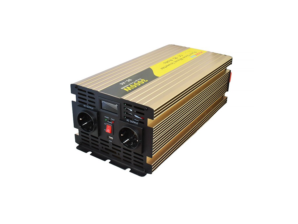 ROGERELE pure sine wave inverter with 230V/50Hz socket. It is suitable for powering all types of appliances with resistive loads and also for appliances with inductive loads such as motors, pumps, refrigerators, fluorescent lamps, etc. It is also suitable for reliable and safe powering of televisions, computers, printers, measuring instruments and other electrical appliances with sensitive electronics. Available in a version for 12V batteries, or multiple connected batteries with a total voltage of 48V.