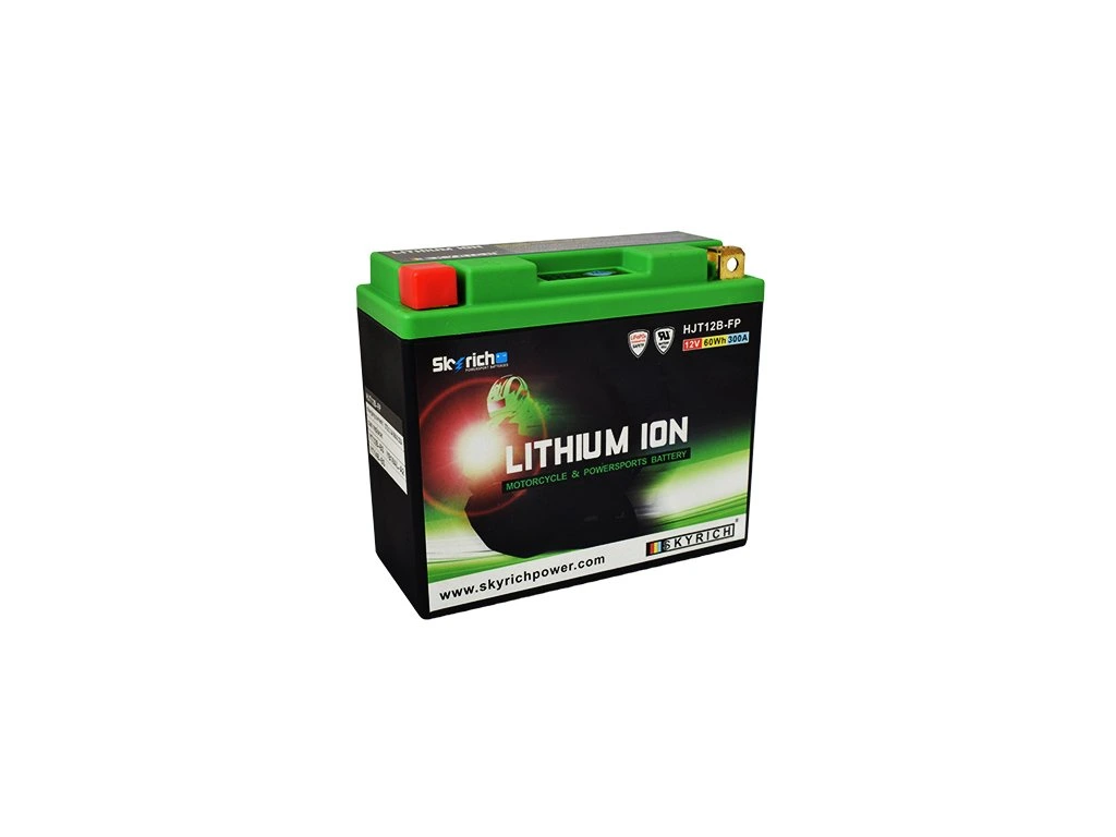 All motorcycle starter lithium (LiFePO4) accumulators by Skyrich have a discharge current up to 40 times greater than their capacity. Due to the use of lithium technology, Skyrich Lithium motorcycle batteries are up to 66% lighter than traditional lead-acid batteries and have a lifespan of up to 2000 charge cycles. Every Skyrich motorcycle battery has a low self-discharge. The shelf life is up to 1 year at a temperature of up to 25°C. The manufacturer recommends regular charging at least once every 6 months.