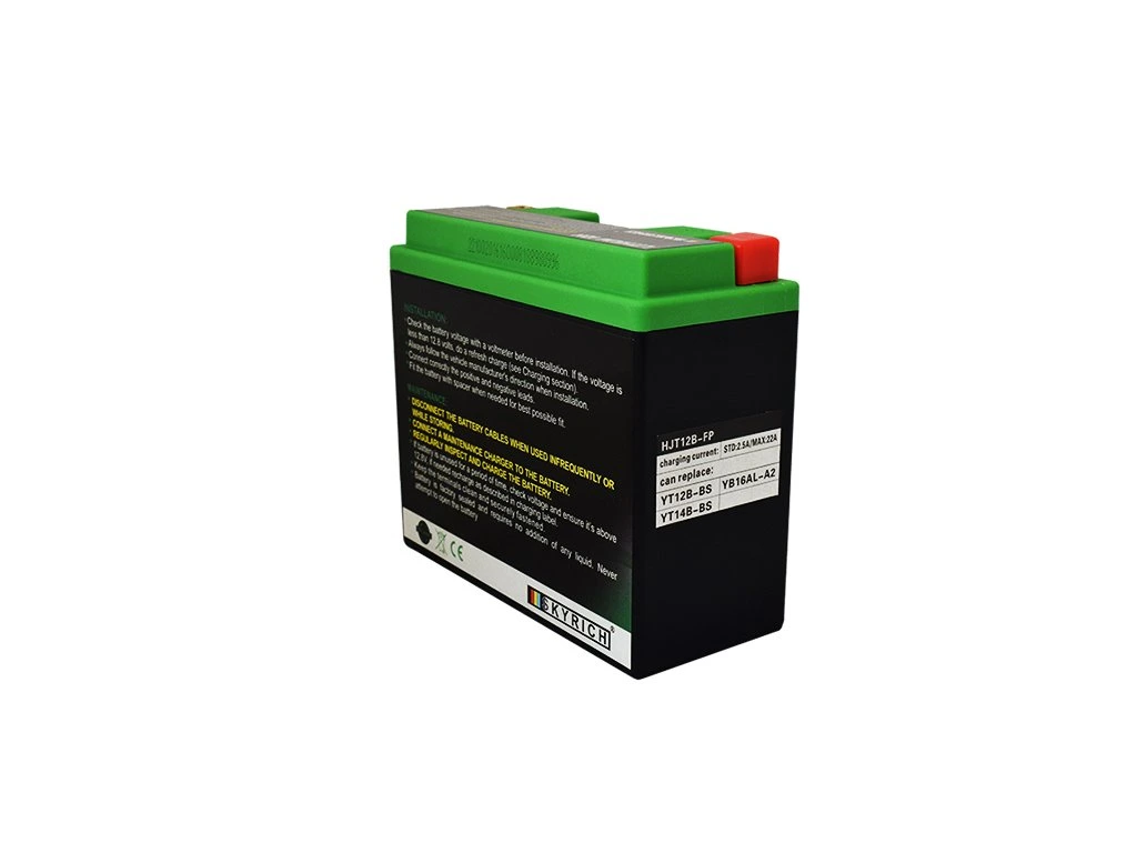 Skyrich LiFePO4 lithium batteries are known for their small dimensions. Some types come with spacers for use in different sized battery spaces. Skyrich Lithium batteries do not contain toxic metals such as lead, mercury or cobalt. It also does not contain sulfuric acid, like conventional lead batteries, and therefore can be used in any position, including "upside down".