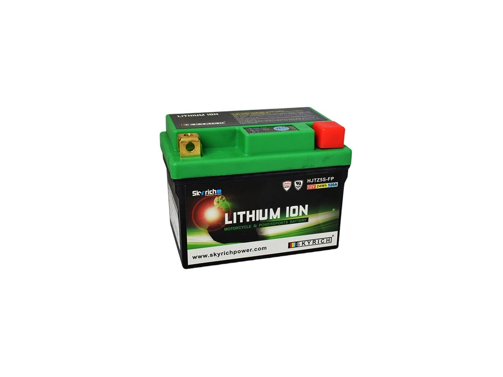 Skyrich LiFePO4 lithium batteries are known for their small dimensions. Some types come with spacers for use in different sized battery spaces. Skyrich Lithium batteries do not contain toxic metals such as lead, mercury or cobalt. It also does not contain sulfuric acid, like conventional lead batteries, and therefore can be used in any position, including "upside down".